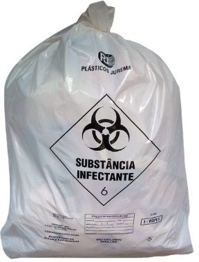 O saco de lixo branco hospitalar, também conhecido como saco de lixo infectante branco,é usado para acondicionar resíduos de serviços de saúde que podem conter materiais biológicos contaminados, como sangue, secreções e tecidos. Fabricados em polietileno de alta densidade (PEAD), eles são resistentes e possuem solda em formato de estrela para evitar vazamentos. Além disso, são identificados com símbolos de risco biológico, em conformidade com a norma NBR 7500, e possuem a inscrição "RSSS - Resíduos Sólidos de Serviços de Saúde".